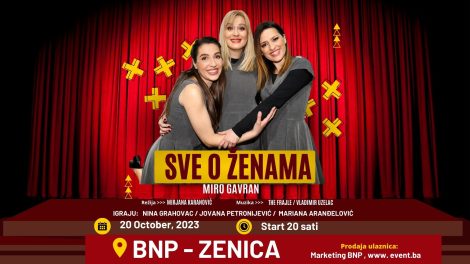 Pozorišna predstava “Sve o ženama” u režiji Mirjane Karanović, prema tekstu Mire Gavrana, bit će odigrana u petak 20. Oktobra 2023. u...