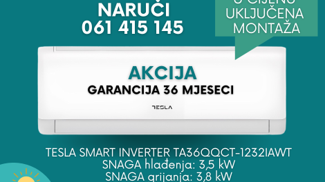 Iskoristi priliku, najpovoljniji uvjeti, najniže cijene i uračunata montaža! TESLA SMART INVERTER TA36QQCT-1232IAWT SNAGA hlađenja: 3,5 kW SNAGA...