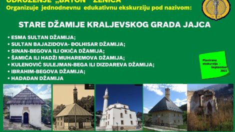 PRIJAVI SE: Udruženje Baton Zenica organizuje edukativnu ekskurziju “Stare džamije Kraljevskog grada Jajca”- Udruženje „Baton “ Zenica...