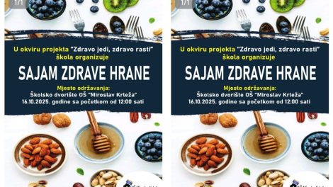 U okviru projekta „Zdravo jedi, zdravo rasti“, Osnovna škola „Miroslav Krleža“ Zenica organizuje Sajam zdrave hrane koji će se održati 16. oktobra...