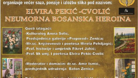 Udruženje “Baton” Zenica organizuje veče saza, poezije i izložbu slika pod nazivom: ELVIRA PEKIĆ CVOLIĆ – NEUMORNA BOSANSKA HEROINA U cilju...
