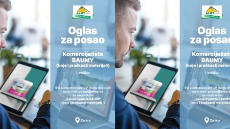 Oglas za posao: Komercijalista- Almy d.o.o. Zenica objavljuje konkurs za prijem u radni odnos: Terenski komercijalista u prodaji BAUMY proizvoda...