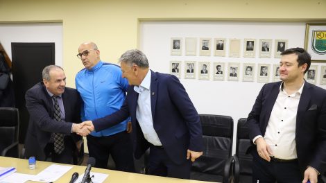 Gradonačelnik Zenice Fuad Kasumović, direktor Javnog preduzeća za upravljanje i održavanje sportskih objekata Zenica Nedim Talić i predsjednik...