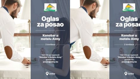 Oglas za posao: Konobari- Almy d.o.o. Zenica objavljuje konkurs za prijem u radni odnos: POZICIJA: Konobar u motelu Almy LOKACIJA: Zenica BROJ...