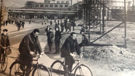 Opet svi u jednom smjeru, na posao kroz kapiju Dva. Opet tišina , zvuk pare iz lokomotive nadjačava ovu jutarnju tišinu. Ljudi u koloni prelaze preko...