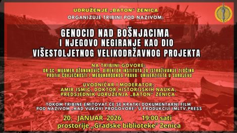 NAJAVA: Tribina “Genocid nad Bošnjacima i njegovo negiranje kao dio višestoljetnog velikodržavnog projekta”- Udruženje „Baton“ Zenica...
