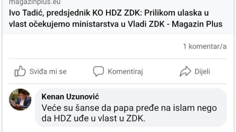 Dok se HDZ ZDK nada ulasku u koaliciju Šestorke u Zeničko-dobojskom kantonu, stigao je i odgovor iz Kasumovićeve stranke da će prije papa preći na...