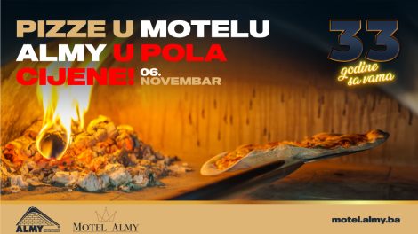 Pizze u Motelu Almy u pola cijene!- Ne prestajemo sa iznenađenjima za 33. rođendan kompanije ALMY! Pored 15X vaučera u vrijednosti od 30KM u motelu...