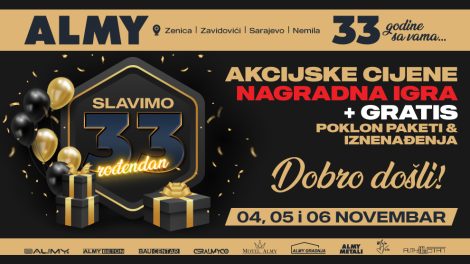 Kompanija Almy slavi 33. rođendan! – Očekuju vas tri dana velikih sniženja u maloprodajnim objektima kompanije Almy. Od 04 do 06.11. na...
