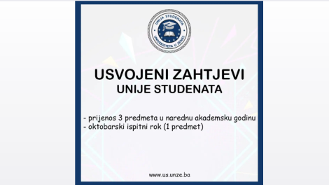 Senat UNZE usvojio zahtjeve Unije studenata- Danas je održana nova sjednica Senata UNZE na kojoj su usvojeni određeni zahtjevi Unije studenata. Na...