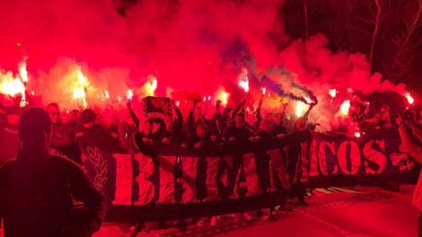 Pripadnici navijačke grupe Ljuti Krajišnici, u korteu su krenuli na stadion Bilino polje u Zenici gdje će Zmajevi igrati utakmicu Lige nacija protiv...