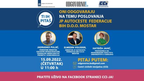Centri civilnih inicijativa (CCI) organizuju tematski Forum na temu „Boljim nadzorom do efikasnijih javnih preduzeća: JP Autoceste Federacije BiH d.o...