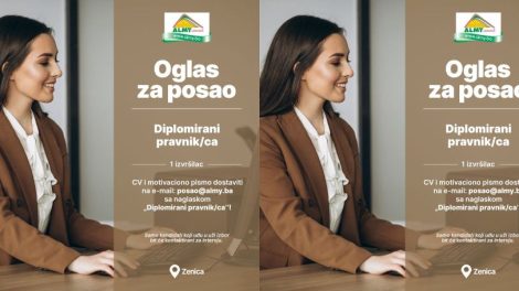Oglas za posao: Diplomirani pravnik- Almy d.o.o. Zenica objavljuje konkurs za prijem u radni odnos: Pozicija: Diplomirani pravnik/ca Izvršilaca: 1...