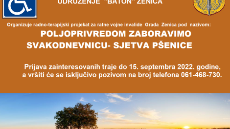 Udruženje „Baton“ Zenica u cilju pozitivne afirmacije ratnih vojnih invalida Grada Zenica, realizuje radno-terapijski projekat pod nazivom:...