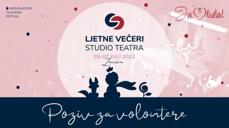 Studio Teatar: POZIV ZA VOLONTERE!- Postani dio tima 6. festivala Ljetne večeri Studio Teatra Studio Teatar poziva mlade od 17 do 27 godina da se...