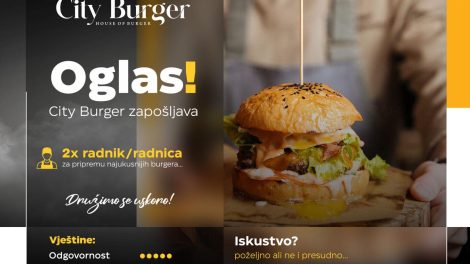 Oglas za posao: City Burger Zenica- zapošljava dva radnika/radnice za pripremu najukusnijih burgera. Poželjno iskustvo, ali ne presudno. Prijave...