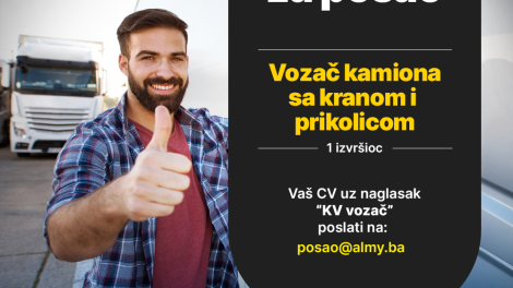 OGLAS ZA POSAO – Vozač kamiona sa kranom i prikolicom USLOVI KV vozač SSS poželjno posjedovanje digitalne kartice Prijave na konkurs sa...
