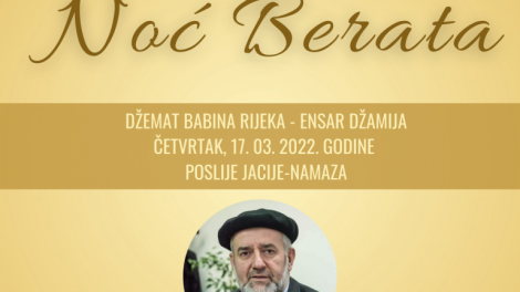 Mubarek noć Lejletu-l-berat, po Takvimu Rijaseta Islamske zajednice u Bosni i Hercegovini za 2022. godinu nastupa u akšam, u četvrtak, 17. marta, i...