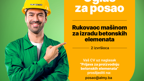 OGLAS ZA POSAO- Rukovaoc mašinom za izradu betonskih elemenata- 2 izvršioca Lokacija: Lipice – Zenica Potrebne kvalifikacije: • Minimum III...