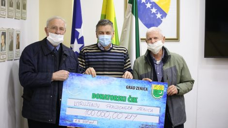 Gradonačelnik Zenice Fuad Kasumović uručio je danas donatorski ček predsjedniku Udruženja penzionera/umirovljenika Grada Zenica Eminu Sijerčiću. Radi...
