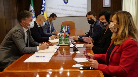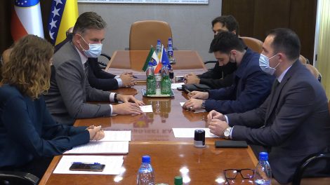 Premijer Zeničko-dobojskog kantona Mirnes Bašić sa saradnicima, ministrom za privredu Zlatkom Jelićem i ministrom za prostorno uređenje, promet i...