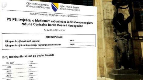 Samo za mjesec, broj blokiranih računa poslovnih subjekata u Bosni i Hercegovini povećan je za 328. Podaci su to Centralne banke BiH koji ukazuju da...