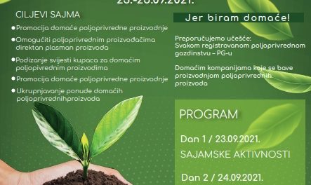 Obavještavamo Vas da će se ESOF FAIR TRADE 2. Sajam domaćih poljoprivrednih proizvoda održati u period od 23 do 25. septembra, 2021. godine na Trgu...