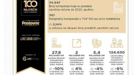 Stotinu najvećih u BiH: Preliminarni podaci u poražavajućoj godini- Ovogodišnji projekat “100 najvećih u BiH” realizuje se 34. put i biće...