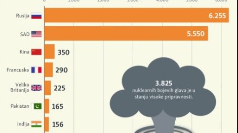 Na svijetu 13.080 nuklearnih bojevih glava
