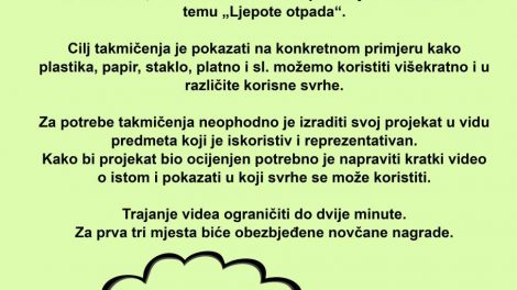 Poziv za takmičenje u kreativnom iskorištavanju otpada- U okviru projekta “Mali ekolozi, veliki poduhvati” Centar za mlade INPUT...