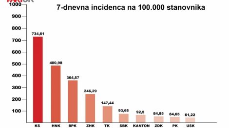 Sedmodnevni prosjek: Pogledajte stanje i broj zaraženih po kantonima- Kanton Sarajevo u proteklim sedmicama bilježi nagli rast broja zaraženih...