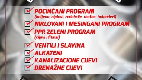 Vikend akcija u Bau centrima kompanije Almy! Kompletan vodomaterijal snižen 10% od čega izdvajamo: * pocinčani program(koljena, niplovi, redukcije...