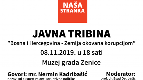Poziv na Javnu tribinu “BiH – Zemlja okovana korupcijom” – Kantonalni odbor ZDK i Gradski odbor Zenica Naše stranke...