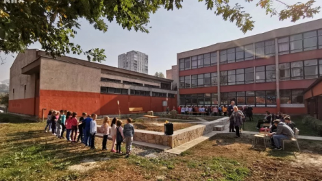 Mladi osnovnoj školi u Zenici poklonili novoizgrađeno školsko dvorište s klupama – Omladinsko udruženje REaktiv s koordinatoricom projekta...