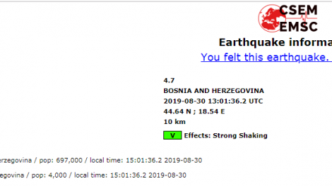 Jak zemljotres zabilježen u okolini Tuzle, osjetio se i u Zenici – Danas u 15:02 u okolini Tuzle osjetio se zemljotres jačine 4,6 stepeni...