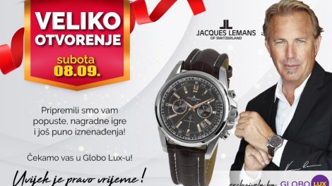 Svečano otvorenje u subotu: Jacques Lemans – samo u Globo Luxu! – Zadovoljstvo nam je najaviti svečano otvorenje prodavnice satova...