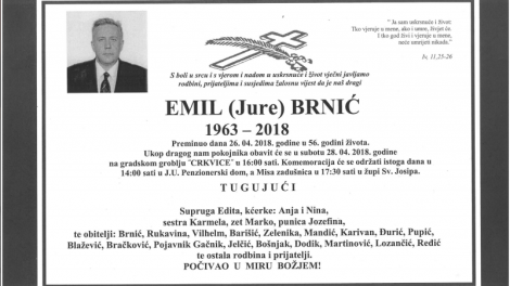 In memoriam Emil Brnić – U Zenici je preminuo u 56 godini života Emil Brnić aktualni direktor JU Penzionerski dom u Zenici. Komemoracija će se...