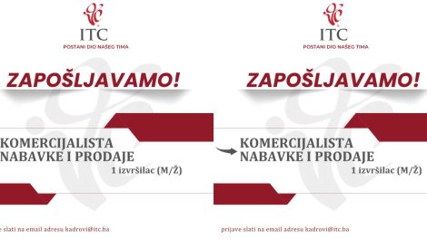 Oglas za posao: Komercijalista nabavke i prodaje – Na osnovu ukazanih potreba Generalni direktor ITC Zenica d.o.o. raspisuje oglas za popunu...