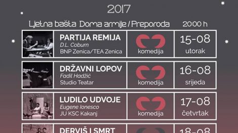 Festival “Ljetne večeri Studio Teatra” od 15. do 19. augusta – Udruženje za promociju i razvoj kulturnih aktivnosti “Studio teatar” iz Zenice...