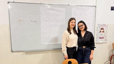 Studentice četvrte godine Razredne nastave na Filozofskom fakultetu Zenica, Lejla Pašanbegović i Olja Šišić, uz podršku višeg asistenta Tarika...