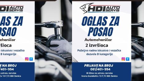 Oglas za posao | Automehaničar | Autoservis HDI- Autoservis HDi Lokacija: Ivana Gundulića 13F, 72 000 Zenica Pozicija: Prijem novih radnika Opis...