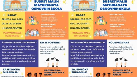 Dana 26. februara 2025. godine, od 11 do 14 sati, u KŠC “Sv. Pavao” Zenica održat će se poseban susret namijenjen svim učenicima devetih razreda...