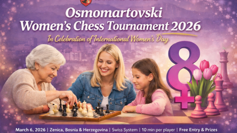 Šahovski klub „Čelik“ Zenica organizuje „Osmomartovski šahovski turnir“, pozivnog karaktera u čast Međunarodnog dana žena. Želja Organizatora je da...
