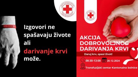 Crveni križ Grada Zenica organizuje posljednju ovogodišnju akciju DOBROVOLJNOG DARIVANJA KRVI na dan 20.12.2024. petak – u vremenu od 08:30 do...