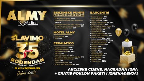 ⭕️ Kompanija Almy slavi 35. rođendan! ⭕️ Od 08. do 10.11.2024. očekuju vas tri dana velikih sniženja u maloprodajnim objektima kompanije Almy ⭕️...