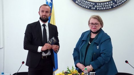 Zamjenica predsjedavajućeg Vijeća ministara i ministrica vanjskih poslova BiH Bisera Turković uručila je diplomatski pasoš trofejnom bh. atletičaru...