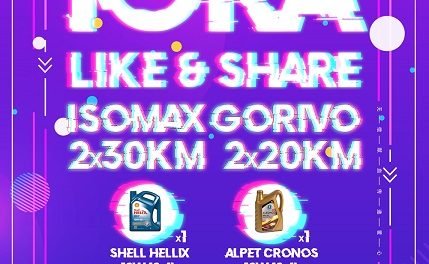 Nagradna igra “Like & Share” na oficijelnoj facebook stranici kompanije Almy! Nagrade: 2x30KM i 2x20KM ISOMAX goriva, Shell Hellix...