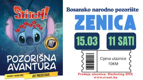 Dječja predstava “Stitch” u BNP Zenica! Pripremite se za nezaboravnu avanturu! Datum: 15. mart 2025. u 11 sati Lokacija: Bosansko narodno...