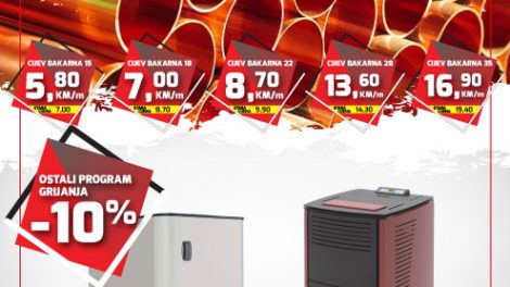 Vikend akcija u Bau centru Almy Zenica. Kompletan program grijanja snižen 10%. Akcija traje 22. i 23.02.2020. god. i važi samo za gotovinsko plaćanje...