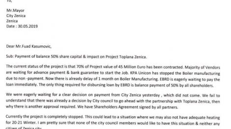 Saopćenje za javnost Gradske uprave Zenica – Dopis Toplana d.o.o. Zenica – Generalni direktor joint- venture kompanije...